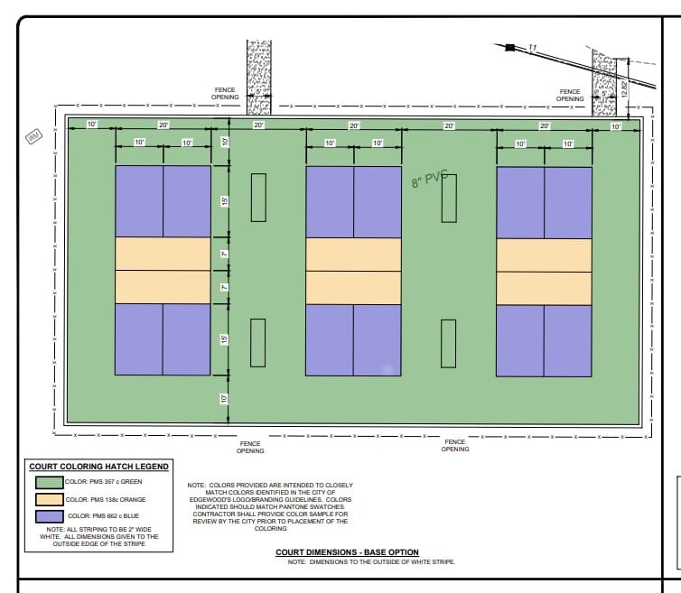 The City of Edgewood is blessed to have two major parks, Presidents and Freedom. These two parks have many amenities in them from baseball/softball fields, basketball courts, playgrounds, tennis courts and walking trails. Presidents Park does have Pickleball court lines drawn on the tennis courts but stand-alone Pickleball Courts are non-existent. With the demand growing and no signs of it slowing in the near future the City has decided to build 3-4 stand-alone Pickleball Courts in Freedom Park next to our Liberty Hall Event Center.
