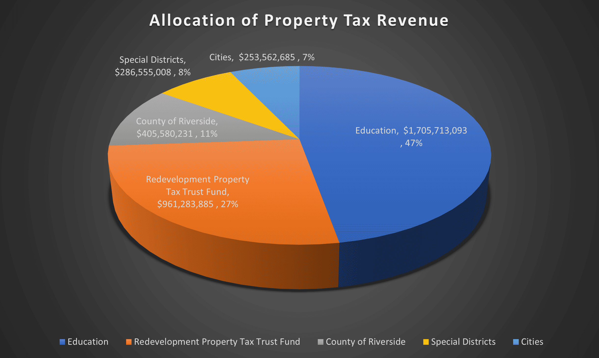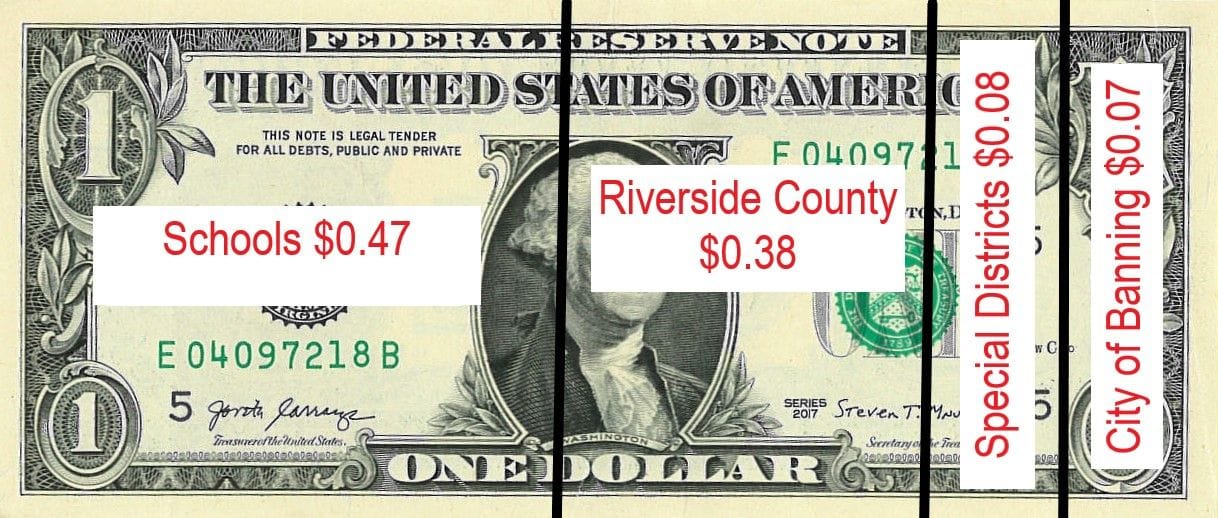 The average home value in Banning is just under $400,000 as of March, 2022. The annual property tax paid by a $400,000 home in Riverside County is approximately $3,200, of which, the City of Banning receives roughly $400. In 1978, the California Constitution was amended by the voters to restrict increases of property taxes. Propostion 13 requires assessment of each taxable property based on its fair market value and limits a property owner's general levy to 1 percent of the assessed value. Each year, the property taxes received by the City of Banning are approximately $7.5M. Slightly more than one-half of the property taxes are generated by residential property. The remainder is generated by commercial property. Sales taxes amount to $3.5M annually, which is very low compared to other cities with similar populations. The sales tax rate in Banning is 7.75%.