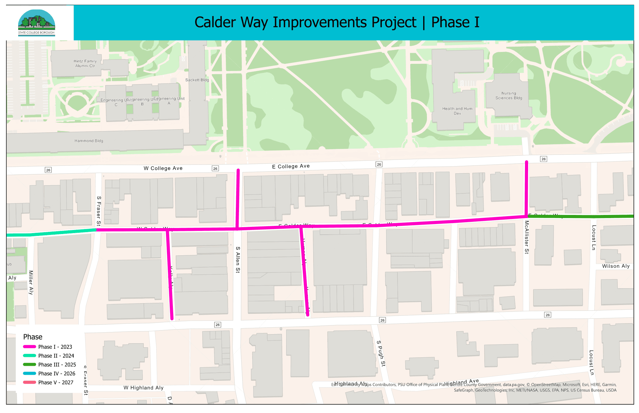 The Borough of State College is delighted to present the Calder Way Project, a focal point within the esteemed Downtown Master Plan. The vision is to transform this corridor into a pedestrian-preferred enclave, reducing vehicular traffic and enhancing the overall urban experience.
